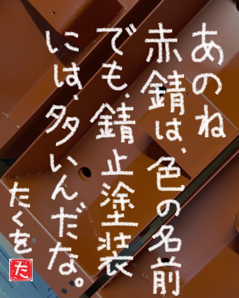 一般の方からするとおかしな話です。「赤さび」実は、色の名前なんですよ。さび止め塗料なんですけれどね。