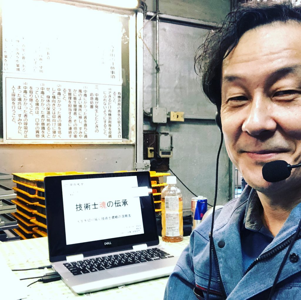塗装のこと 塗装屋のDX 2021.10.09 2021.10.12 本日は、ご縁あって母校の中央大学の技術士会の講演会でに登壇させて頂きました。 登壇といっても、コロナ禍の影響でオンライン開催です。せっかくですから、私のホームグランドの工場で作業着姿で行いました。 なぜ、DXかって?一応、パソコン使ってオンラインでやってますので…。 人の心に感動の色を塗るのが私の仕事です。少しでも、心が動いていただけたなら光栄です。 結果は、どうだったか?って、人の心内までは分かりません。ただ、1つ言えるのは、別の講演依頼を頂きました。有難い限りです。 Tweet Share Hatena Pocket RSS feedly 塗装のこと, 日々のこと 昨夜の地震(無事です。) 八王子FM 技術のミカタ(工業塗装組合特集)