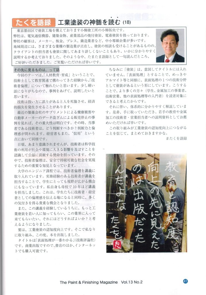 塗料報知新聞社の季刊誌「塗布と塗膜」令和6年5月号に掲載されました。