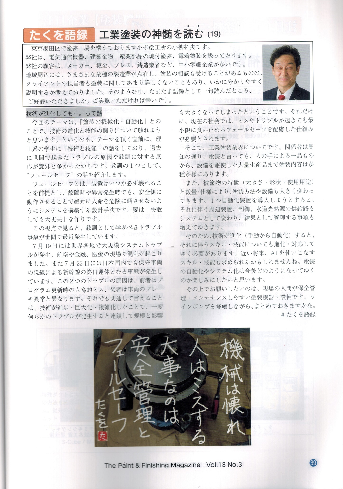今回の特集は、塗工の自動化・ロボット化で、コラムのお題もそれに準じております。