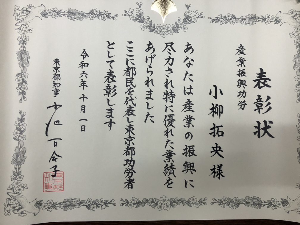 塗装のこと 【ご報告】東京都産業功労表彰を頂きました。 2024.10.01 2024.10.10 令和6年10月1日は都民の日です。東京都庁第一庁舎にて、東京都功労者表彰式に出席、産業振興功労表彰を頂きました。 この表彰に際し、推薦して頂いた東京工業塗装協同組合の関係者の皆様にこの場を借りて御礼申し上げます。会場の雰囲気は、厳粛で独特な感じがしました。身が引き締まる思いです。生業とする工業塗装の業界に微力ながら貢献できたならば幸いです。 Tweet Share Hatena Pocket RSS feedly 塗装のこと, 日々のこと チタン・コーティングと塗装の話 コラム掲載