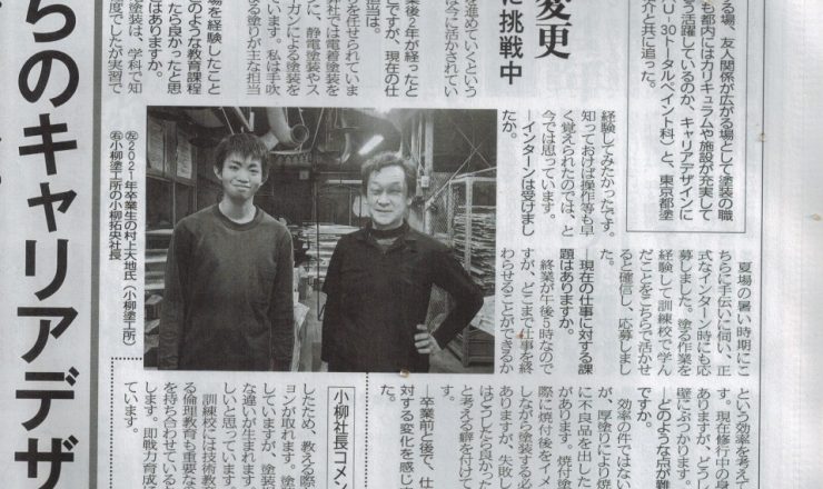 東商のインタビューと同時期に業界氏の塗料報知新聞社から取材を受けておりました。今回は、職業能力開発センター卒業し弊社に入社し2年経った社員のインタビ...